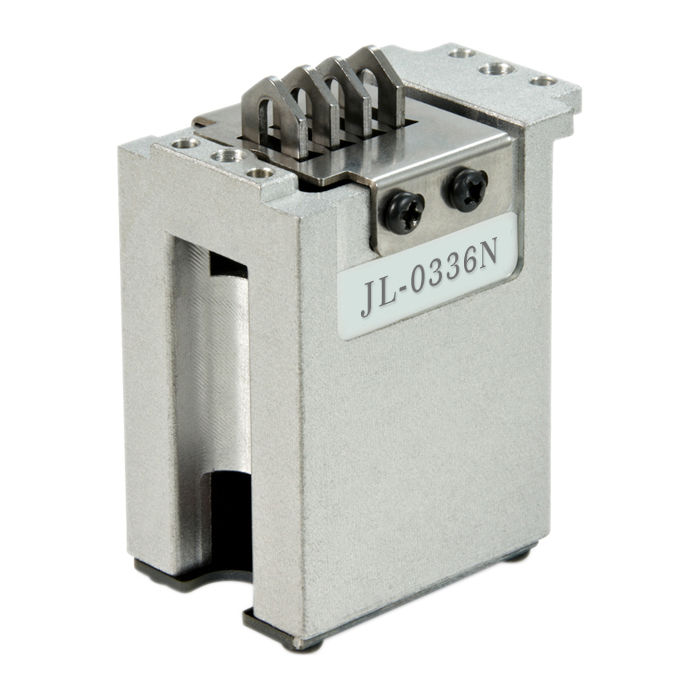 選針片使用五金件加包膠結構(產品下半部分全部為塑膠),外形寬度縮小至21mm。適用于各種機型款式橫機機頭。